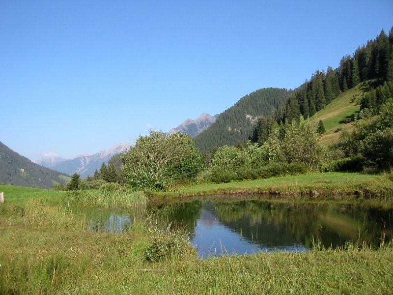 Bockbach ist ein kleines Almdorf auf etwa 1460 m zwischen Steeg und Warth. Die Wanderung beginnt bei der Abzweigung Bockbach wenige hundert Meter nach Hinterellenbogen, einem Ortsteil von Steeg. Im Sommer ist eine Haltestelle des Wanderbusses dort eingerichtet. Der Weg verläuft auf einem asphaltierten Güterweg und ist nicht besonders steil. Vorbei geht’s an der idyllischen Bergsiedlung Birchetsgump. Nach etwa eineinhalb Stunden erreicht man den Bockbach, und gleich über der Brücke die gleichnamige Siedlung. Auf der Strecke dorthin kann man eine besonders blumenreiche Alpinlandschaft erleben. Im Sommer hat man in Bockbach die Möglichkeit in einer der beiden Almwirtschaften die bekannte Tiroler Almkost zu probieren. Die Jausenstation "Zur Gamsvroni" liegt etwa 500 m weit von der Almwirtschaft Bockbach entfernt.