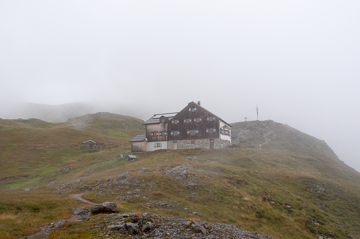 Der Lechtaler Höhenweg startet bei der 2308 m hoch gelegenen Stuttgarter Hütte. Wenige Meter nach der Stuttgarter Hütte muss man sich auch bereits entscheiden, ob man die südliche oder die nördliche Variante des Lechtaler Höhenweges wählt. Die nördliche Variante führt auf direktem Weg zur Leutkircher Hütte. Die südliche Variante führt über den Robert-Bosch-Weg zur Ulmer Hütte und anschließend weiter zur Leutkircher Hütte. Wir entschieden uns für die nördliche Variante und wanderten sogleich auf das Erlijoch hinauf. Mit 2430 m ist das Erlijoch auch der höchste Punkt dieser Etappe. Anschließend führt der Steig über unebene Hänge ins Fanggekar zur Erlachalpe hinab. Unterhalb der Erlachalpe überquert man den Bach und durchquert über den Stapfetobel-Steig steile und erdige Flanken. Nach Durchqueren dieser Stelle erreicht man die Fallersteißböden und oberhalb vom Almajurjoch die Leutkircher Hütte. Wir benötigten auf dieser Variante etwa dreieinhalb Stunden. Die 2251 m hoch gelegene Leutkircher Hütte ist bewirtschaftet und es gibt Übernachtungsmöglichkeiten. Im Falle von Eis, Schnee oder Nässe kann der Stapfetobel kann es unangenehm werden. In diesem Falle kann man von der Erlachalpe zur Bodenalpe absteigen und anschließend über den Normalweg zur Leutkircher Hütte aufsteigen. (Tour vom 25. August 2016)