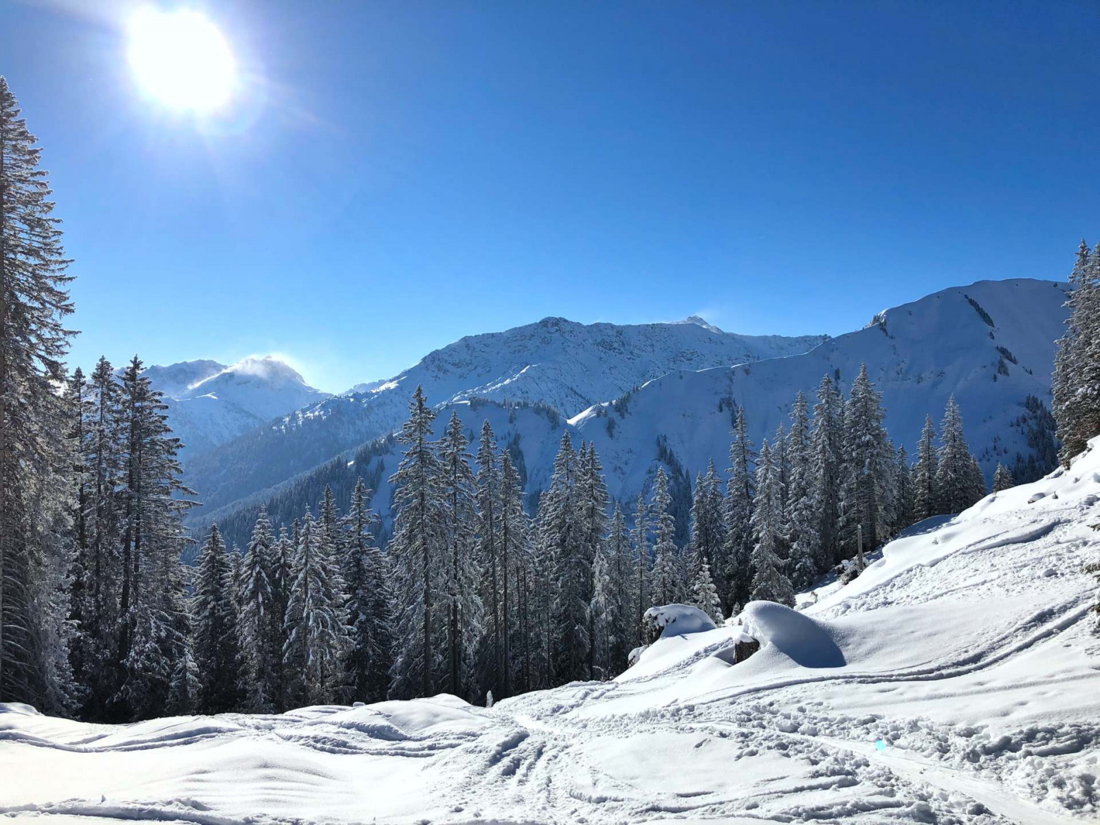 Das Galtjoch ist ein 2.109m hoher Gipfel im nord-östlichen Bereich der Lechtaler Alpen. Ausgangspunkt für die Tour ist die Bergsiedlung Rinnen, welche im Namlosertal zwischen Namlos und Berwang liegt. Gestartet wird beim Wanderparkplatz am Talgrund des Rotlechs. Von hier geht es zunächst über eine Holzbrücke in Richtung Ehenbichler Alm. Zunächst dem Forstweg folgend, führt die Spur nach kurzer Zeit in den Wald. Von hier geht es über Wald- und Wiesengelände stetig aufwärts. Mehrfach trifft man auf den Forstweg bevor man über das letzte steilere Waldstück bei der Ehenbichler Alm ankommt. Von der Ehenbichler Alm geht es weiter in Richtung Westen hinauf zum Galtjoch. Der Weg führt zunächst durch lichten Wald bis man ins freie Gelände gelangt. Über einen Bergrücken unterhalb der Abenspitze (1.962m) gelangt man zum Gipfel des Galtjoch. Vom markanten Gipfelkreuz hat man eine fabelhafte Aussicht sowohl ins deutsche Voralpenland als auch zur Zugspitze. Die Abfahrt ist bei Pulverschnee ein Traum für jeden Tourengeher. Die Tour zum Galtjoch ist für Einsteiger geeignet und bietet auch erfahrenen Tourengehern eine tolle Abwechslung. Für den Aufstieg ist mit einer Gehzeit von ca. 2,5 Stunden zu rechnen, wobei rund 1000hm zu bewältigen sind. An schönen Wintertagen ist mit höherer Frequentierung zu rechnen.